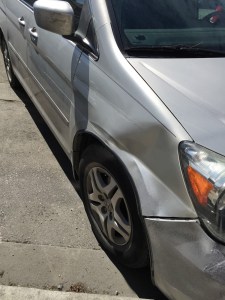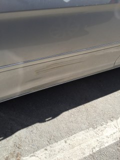 | This damage goes all way down the passenger door. |