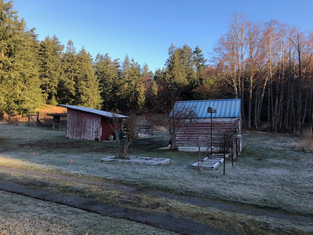 | Looking west from the house to the lower and upper barns. |