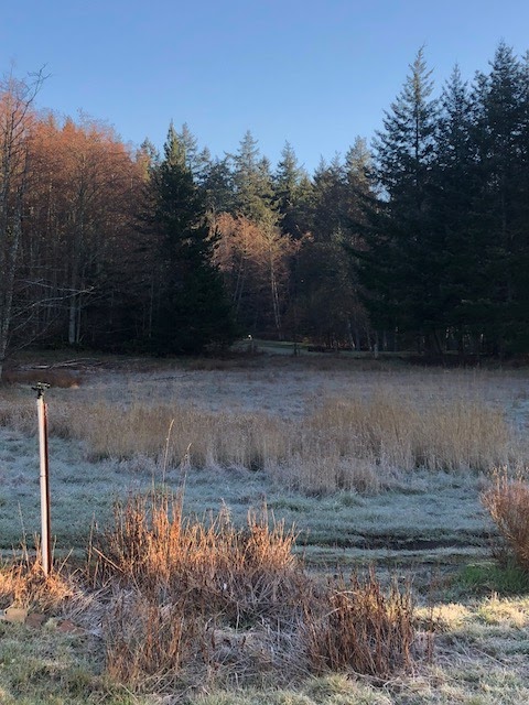| Straight north over frost kissed fields. |