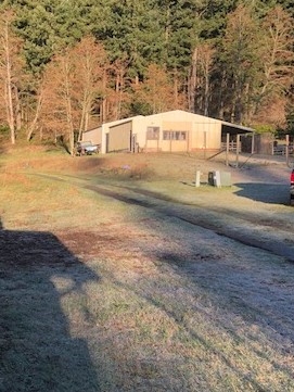 | Shed and the two open storage buildings, one of which is barely visible, NNW. |