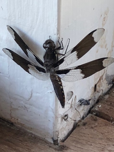 Two dragonflies were stuck in the house late afternoon. I have an untapped talent for catching them unharmed, but don’t think there’s any profit in the technique! A colander and a pot lid enabled me to gently scoop them up, and escort them outdoors.