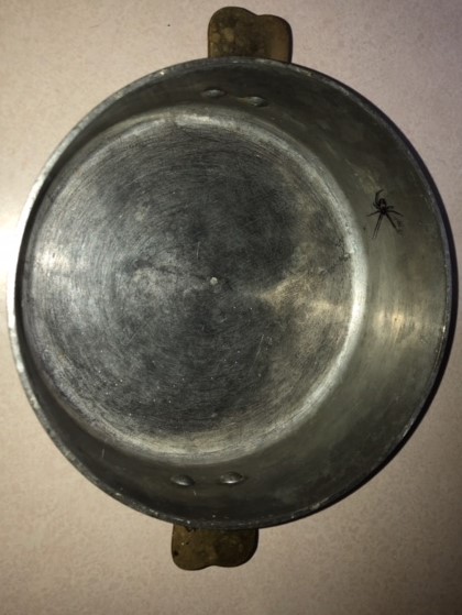 When packing up the Island kitchen, I set aside the tin clad copper pans that mom inherited from one of the authors of her career capping editing project. These are now at our home, and I’ll research how to clean them up. One of the pieces had a spider, and its web, inside of it. Being a spider proponent, except when they invade my deeply personal space, like bed or shoes, I released her to our deck, a place she would otherwise have never seen in her Spidey life!