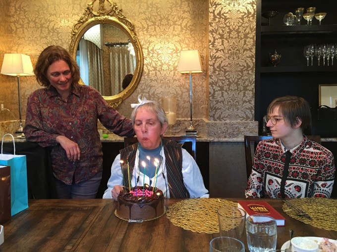 Today is mom’s 84th birthday. Last week I told her we’d gather for dinner on her birthday, and called to remind her last night. She was excited but surprised when most of the local family members were in attendance. A sweet side-note is that the community took her and her buddies out for lunch today. The entire restaurant sang her ‘happy birthday!’