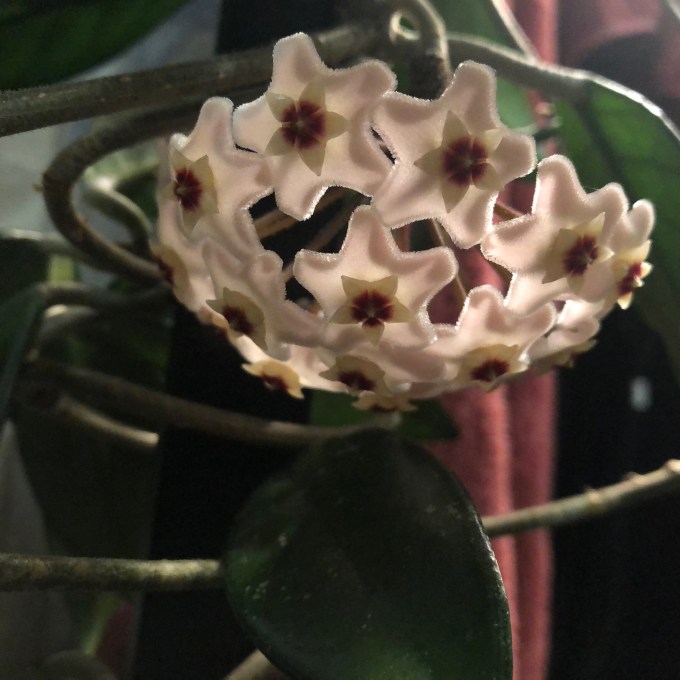 Jane had a knack with blooming house-plants. Like African violets or orchids people receive as gifts. You know the orchids that come into our lives in full bloom and then turn into leathery leaved plants that die on us… Jane’s touch kept those orchids reblooming for years. She also had a Hoya. When it was in bloom, her sun room smelled amazing. It was a sweet, but not too sweet, scent that came up as the room got warmer.