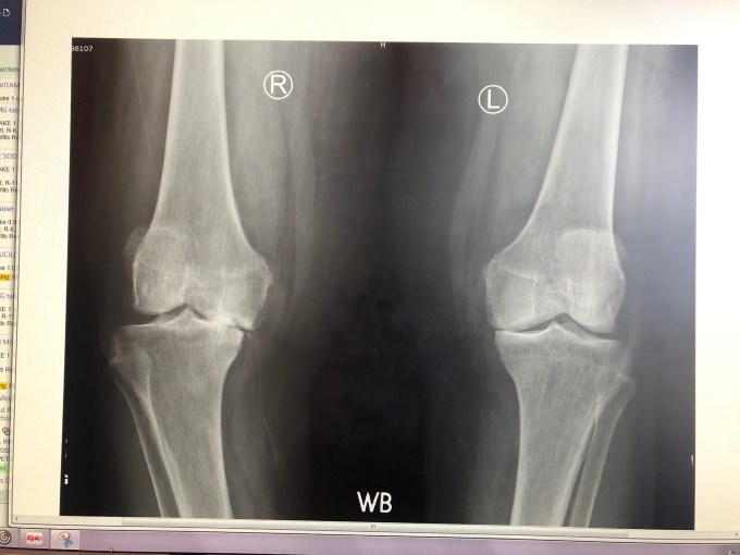 Within 30-minutes, Dr. P, his student, PA, and I were gathered around his monitor, and he said, “This is bad, really bad.” I’m no radiologist, but having seen my own healthy knee x-rays, knew this looked pretty dire. He then said to his collective audience, “It’s memory test time!” and went through a series of clicks to get back to mom’s Feb 2019 knee x-rays. I gasped out loud while uttering, “Oh my God!!” Dr. P said she needs a new knee. I looked at him and said, “We’re not going there. There’s no way she could do the rehab.’ He understood and agreed.