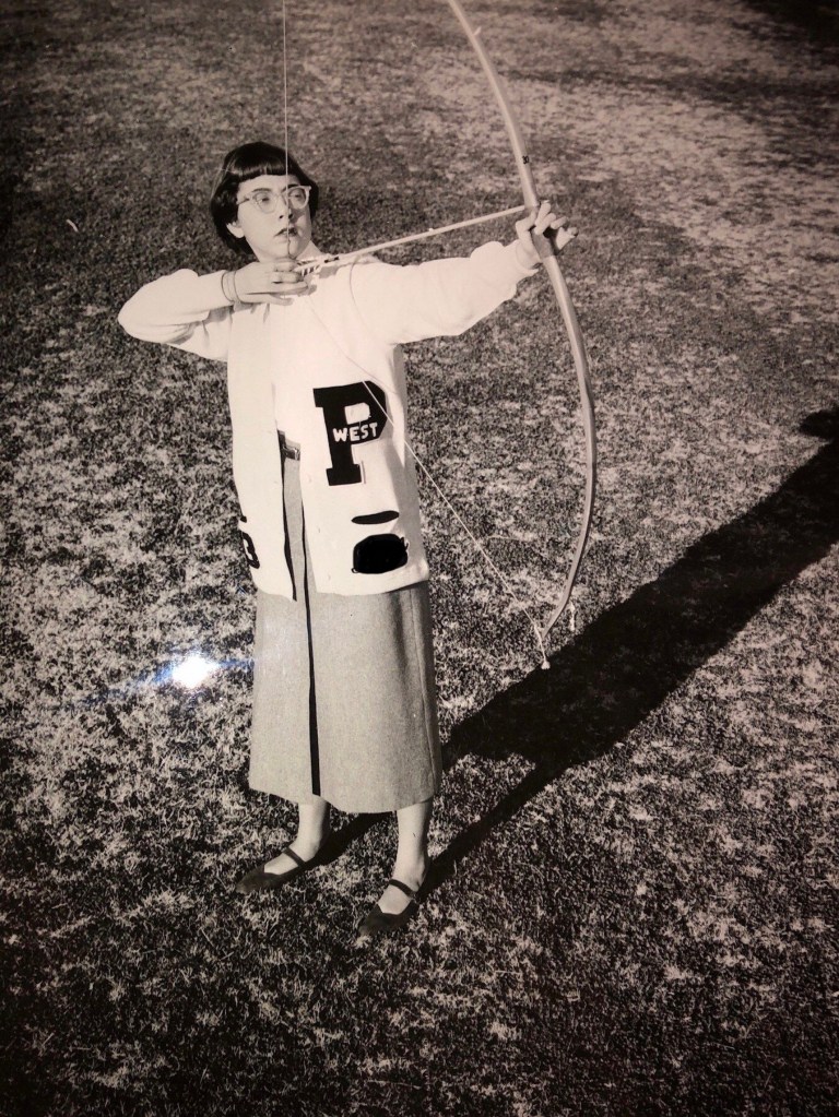 I got stuck late yesterday afternoon as I resumed sorting books. While clearing an existing shelf, I found my mom’s archery scrap book. Girl was in the news!!! They’re so many clipped articles (well over a hundred) that she (or her mom) never finished making the scrap book. I’d like to finish this project in order to learn more about her archery career. I thought I’d share a few pics I found.