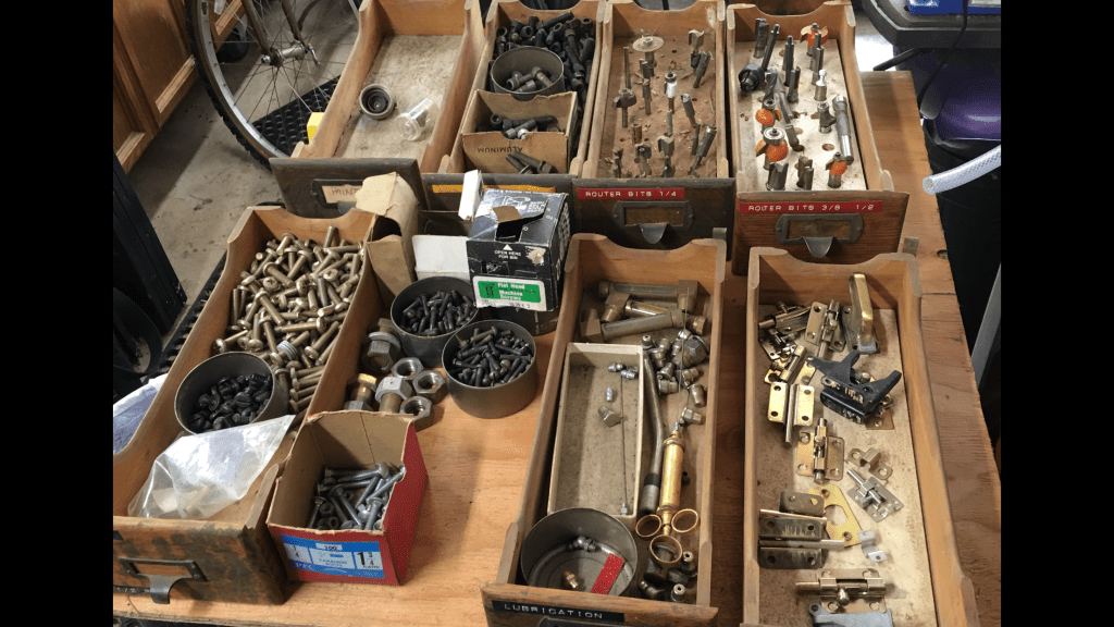 We moved this from mom’s mainland garage to ours a few years ago. This weekend, we got through all of the drawers except 25! There is a lot stuff we’re keeping, but more that either got the heave-ho, or was bagged with like items in order to give it away. Never will we use any flavor of machine screw, but someone else just might!