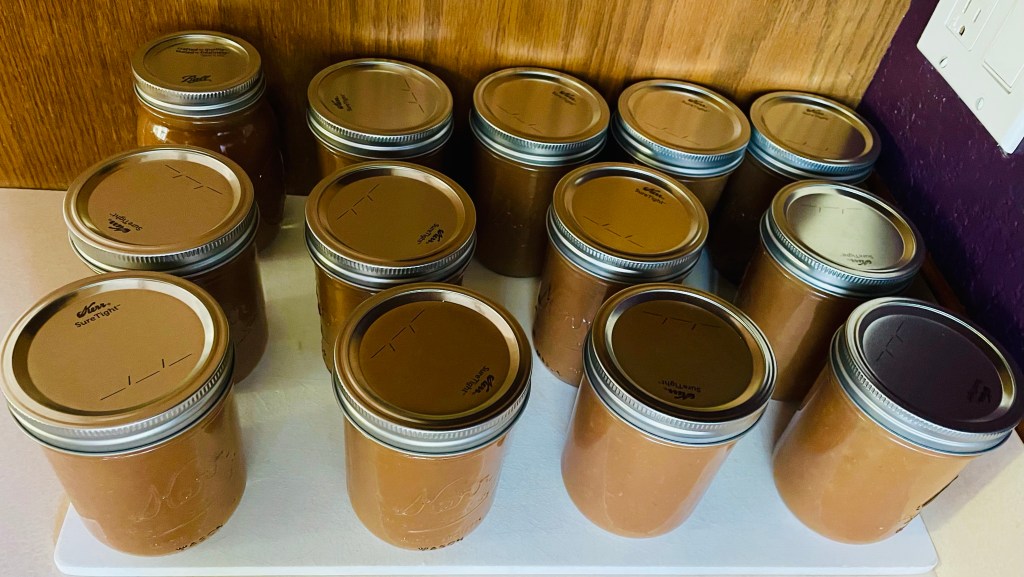 Since returning from the Island, with amazing amounts of plums and apples, I’ve been ‘puttin’ food by.’