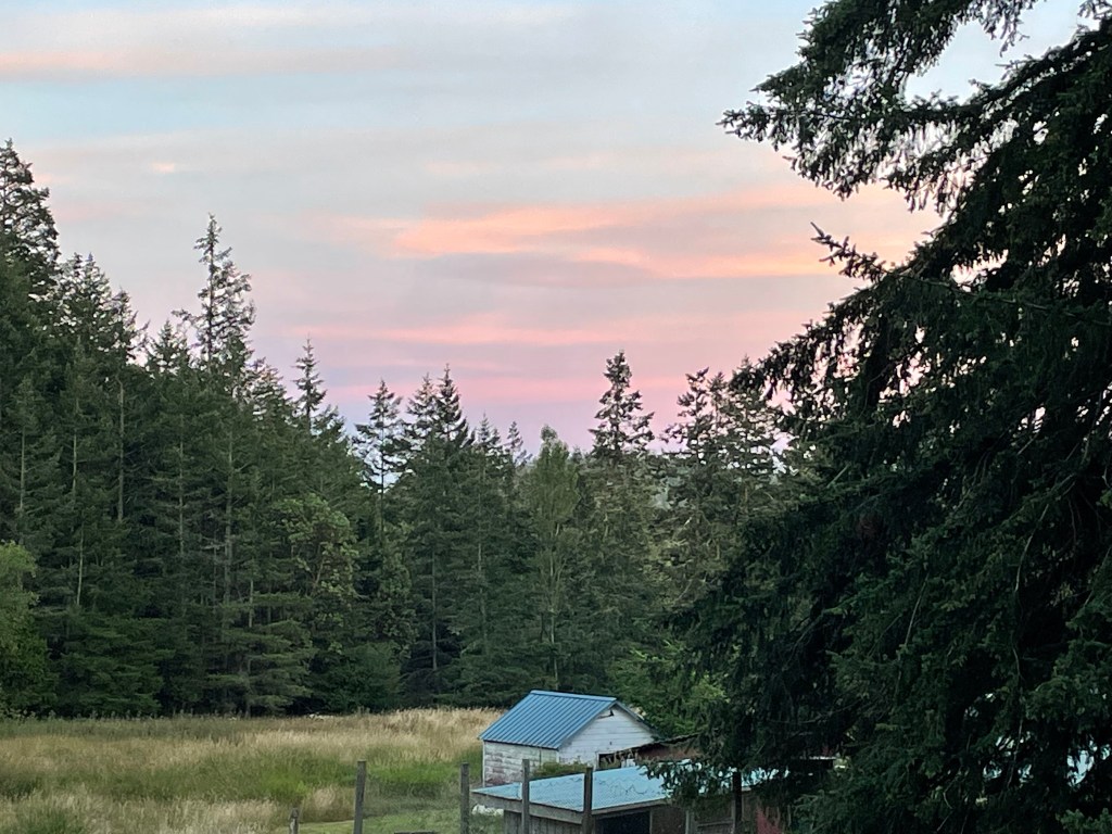 After a shower, a game of virtual backgammon with my DH, some FaceTime with him and his cousin, and dinner, I am enjoying the quiet, and the gentle colors of the sunset reflected in the eastern sky.