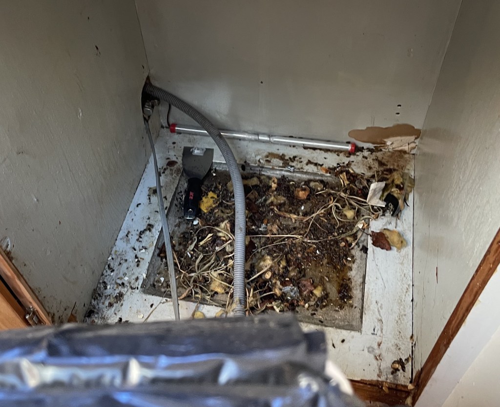 - Turning the rat’s nest that was the underneath of the dishwasher into rat poop soup!
