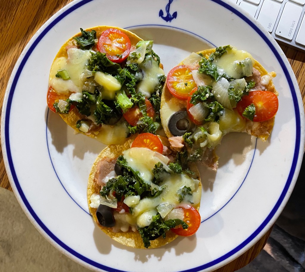 I spent the afternoon playing with some collage, posted the pipe on Facebook (and it’s been adopted by someone I know!), busted out the little heater, and created a fruit fly trap with the apple cider vinegar I picked up at the market. I made incredible street tacos that included leftover kale sautéed in onion. Dishes next, and then it’s oddly time to deploy the dehumidifier, in August!