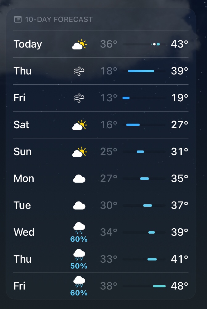 The anticipated weather I kept mentioning while on the island arrives tomorrow. The unknown element is whether we’re going to get Wet, Very Cold & Snow, or Dry, Much, Much Colder and Sunny. My favorite weather dude posts at least three times a day, keeping us all on the edge of our seats. There are many weather ‘models’ he follows like a hungry fox after a vole. The latest is that the ‘No Snow’ model has turned slightly northward, trending toward snow. The Wet model still shows half a foot of snow in our major hub, which, while lovely, would grind a major city to a halt. Thank goodness so many folks can work remotely these days… ❄️
