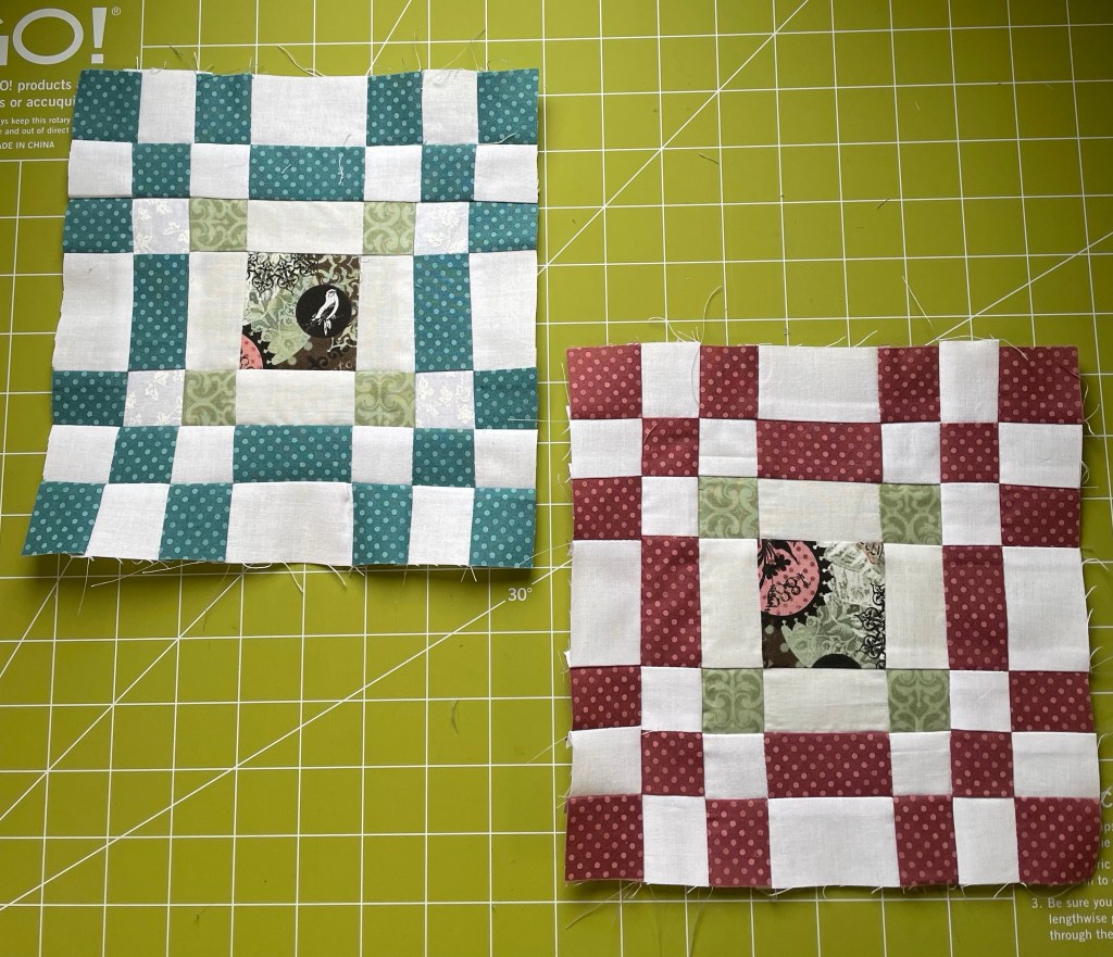 Today was my chill day. I slept in. Over breakfast I figured out which shop-hop (from 2008) quilt blocks to make, did the dishes and put them away in order to have the space needed to turn Stella into a sewing studio, and then after figuring out which fabrics were going to make up for the ones the shop did not provide, I got to cutting. Quilt blocks with 49-pieces are not my usual jam, but these are kinda charming.
