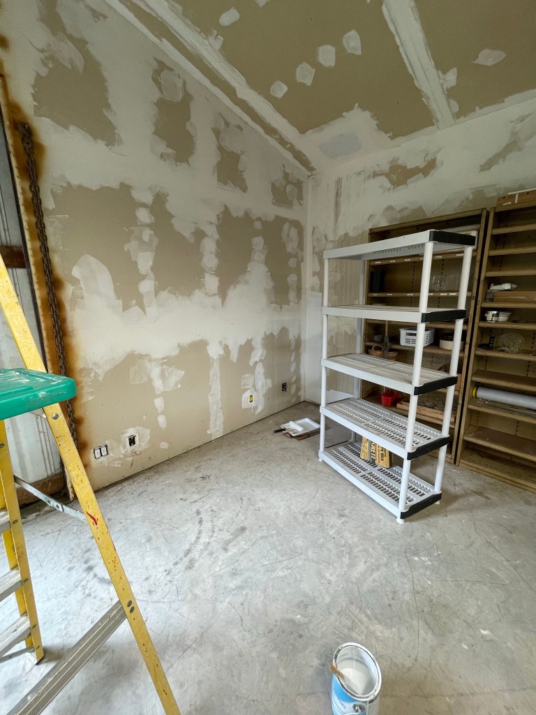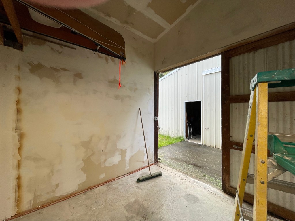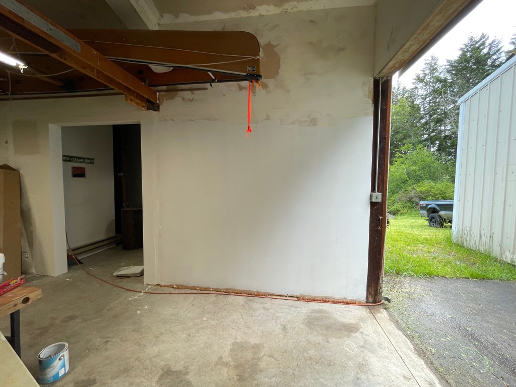 - After sweeping down parts of the walls in the lower barn (yes, sweeping walls), I started priming them. I painted as far as I could reach, saving ladder work for the next session. The difference, even with just the primer, is kind of amazing! While painting I wondered why my dad went through all the effort to sheet rock the building, and then never painted it. It came to me that walls were what was important. Paint/finish wasn’t. The sheetrock holds the insulation in place. Makes the building easier to keep warm while making art. Paint on the walls didn’t matter to him. Paint matters to me as it protects the sheetrock in a building that is not weather tight.