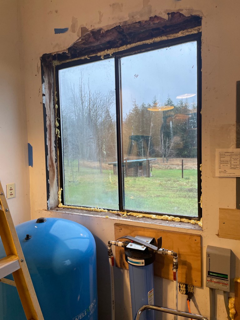 The pump room window is now sealed in place with foam insulation, my right index and middle finger too, and the door got a little help with drafts! The minute we got the gaps filled in, the room was still. It’s amazing what insulation does. We put heavy mil plastic over the window for good measure. I’ll be continuing to watch and adjust the temp in the pump room tomorrow before we leave. The big difference is we will no longer be heating the farm…
