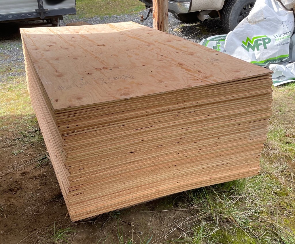 Things dried up enough by this morning that I was able to get some mowing done before running to the lumber company. At the lumber company I picked up 54 sheets of 1/2” plywood for the upper barn’s re-roofing project. One guy used 2 forklifts to get it into the truck. It was fun to watch! I was concerned about the truck getting up the hill and between the buildings with that load (about 2500#). Piece ‘o cake, in 4WD.