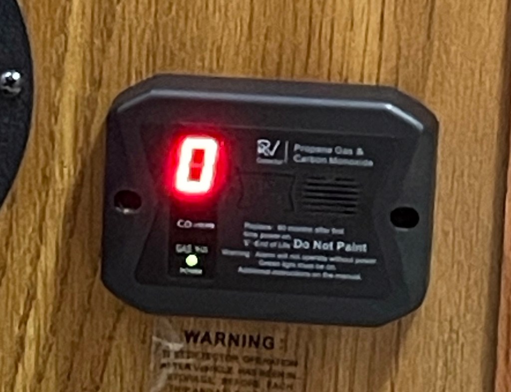 Our friend, who sharpens our knives, and also lives in a trailer, helped me figure out the 12-volt issue that was keeping us from replacing the propane detector. It was a fuse. An in-line fuse under the couch. Evidently when I took scissors to the old propane detector’s wires, at 3AM, while it was loudly telling us it was at the end of its life span, over New Year’s, I shorted out the fuse by cutting the wires simultaneously. I bought a new fuse, followed protocol, and we are again protected from nefarious propane leaks. My DH was 200% participatory in this project. He dealt with the mystery of no power to the wiring to where this unit is attached, trouble shot… but I just happened to finish the wiring with our friend’s help. My DH got the devise attached to the wall. Team work!