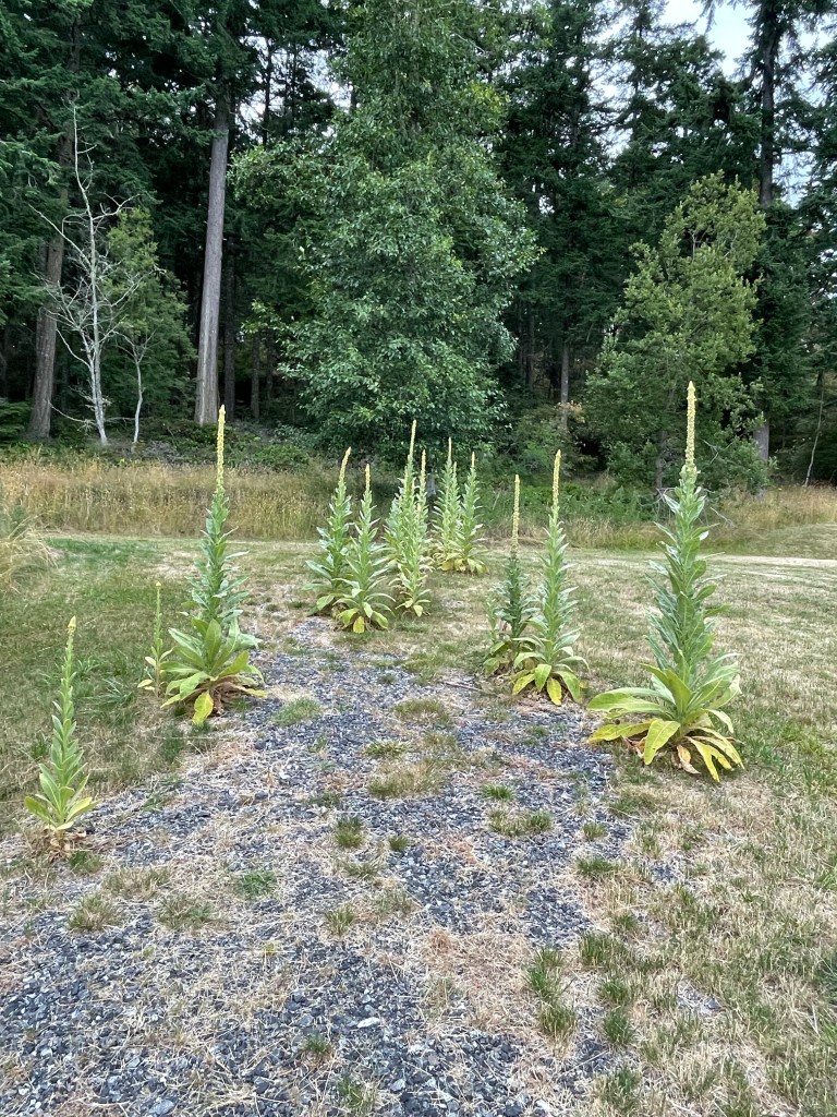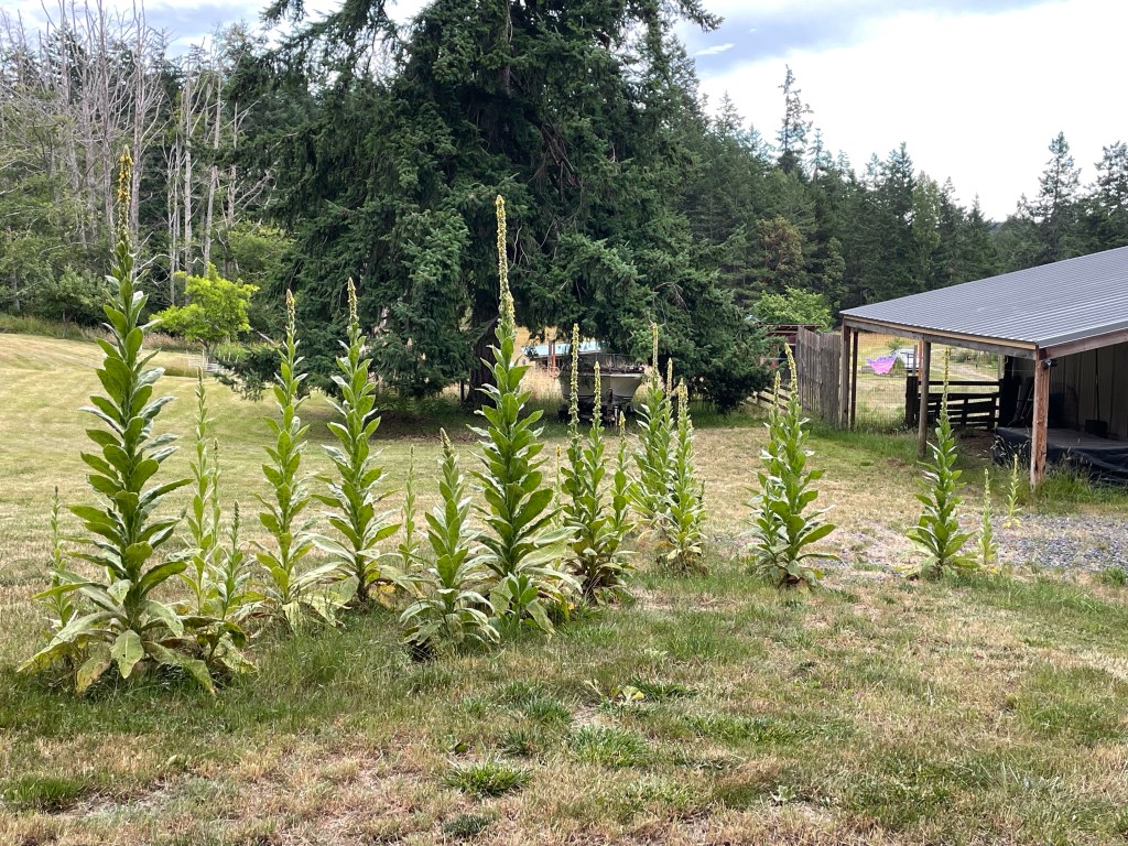 A new soaker hose is draped across the top of Stella’s slope. And water deployed for 20-minutes. I’ll do the same tomorrow morning. The old hose succumbed to hard well water. The fire pit is put back together after being moved for mowing, Tim’s rug is put away. The doe continues to hang out under the lower barn overhang. I’m starting to wonder if it’s the spirit of my dad. She’s getting used to me… Let’s me get closer and doesn’t gallop off too far, but trots off to the fir, 30’ away.