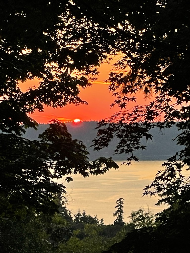 - And finally, smoke season has arrived… I could smell it mid-afternoon. The view of the island (not our Island) was a silhouette. I closed up the house, thankful it was only 70º in and out, and checked my air quality app, Purple Air. It said everything was great. Um, not! Hopefully latency and not some bleed down from the EPA getting gutted. The sunset ought to be outrageous.