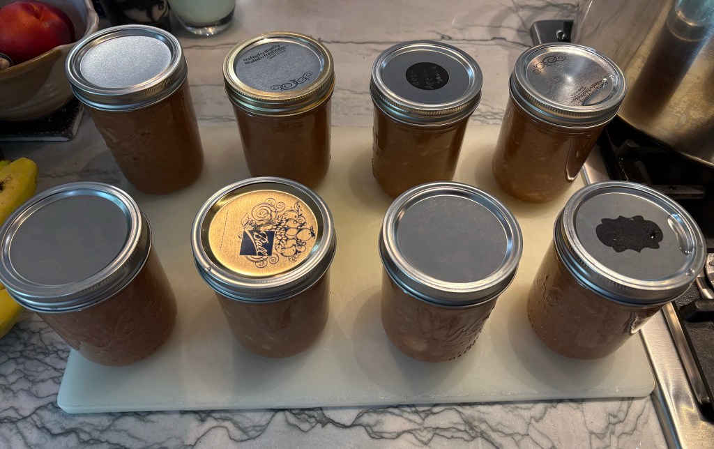 My goal is to complete two batches (single or double) a day. Tomorrow I’ll get the second apple butter started, and hope to find enough ripe plums, amongst the masses, to make jam. If I can’t I’ll turn to apple/rhubarb/ginger jam.