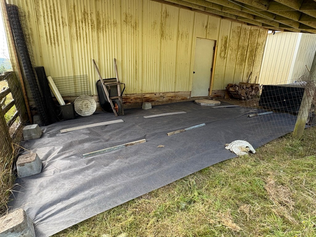 - 2/3rds of the lower barn overhang is prepped for gravel. This means there’s landscape cloth in place, and being held down by heavy objects. This will also keep the tenant’s cat from using the area as a liter box 🐈. I don’t begrudge her pooping in a dry dusty place, but would rather she didn’t.