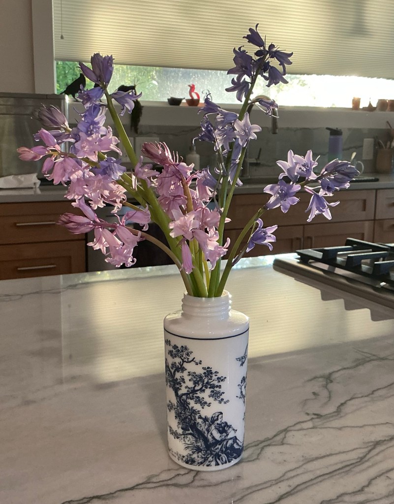 I also dug a bunch of invasive sweet woodruff up. I can’t believe that this stuff is sold in nurseries. 🙄 Other gardening enjoyment was to keep removing dead bits out of the forsythia, trim back some dead pieces of vine (akebia quinata) where it got whacked last week as our neighbors had a row of fruit trees removed from the other side of the fence, and picked a small bouquet of blue bells.